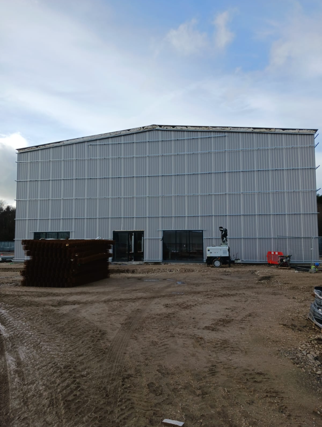 The external wall cladding has been constructed using a Euroclad Elite Plus 51 built-up system, incorporating 160mm thick glass fibre insulation to achieve a thermal performance of 0.26 W/m²K, which will provide a robust and weatherproof finish around the building.